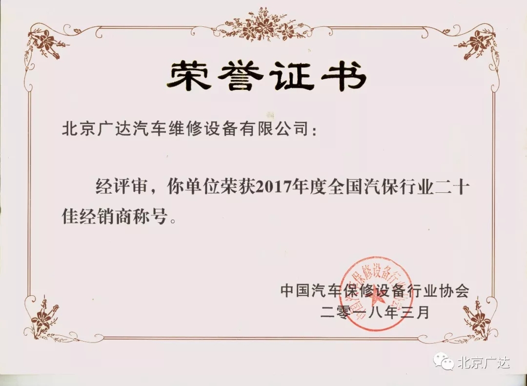 北京廣達蟬聯(lián)“2017年度全國汽保行業(yè)二十佳經(jīng)銷